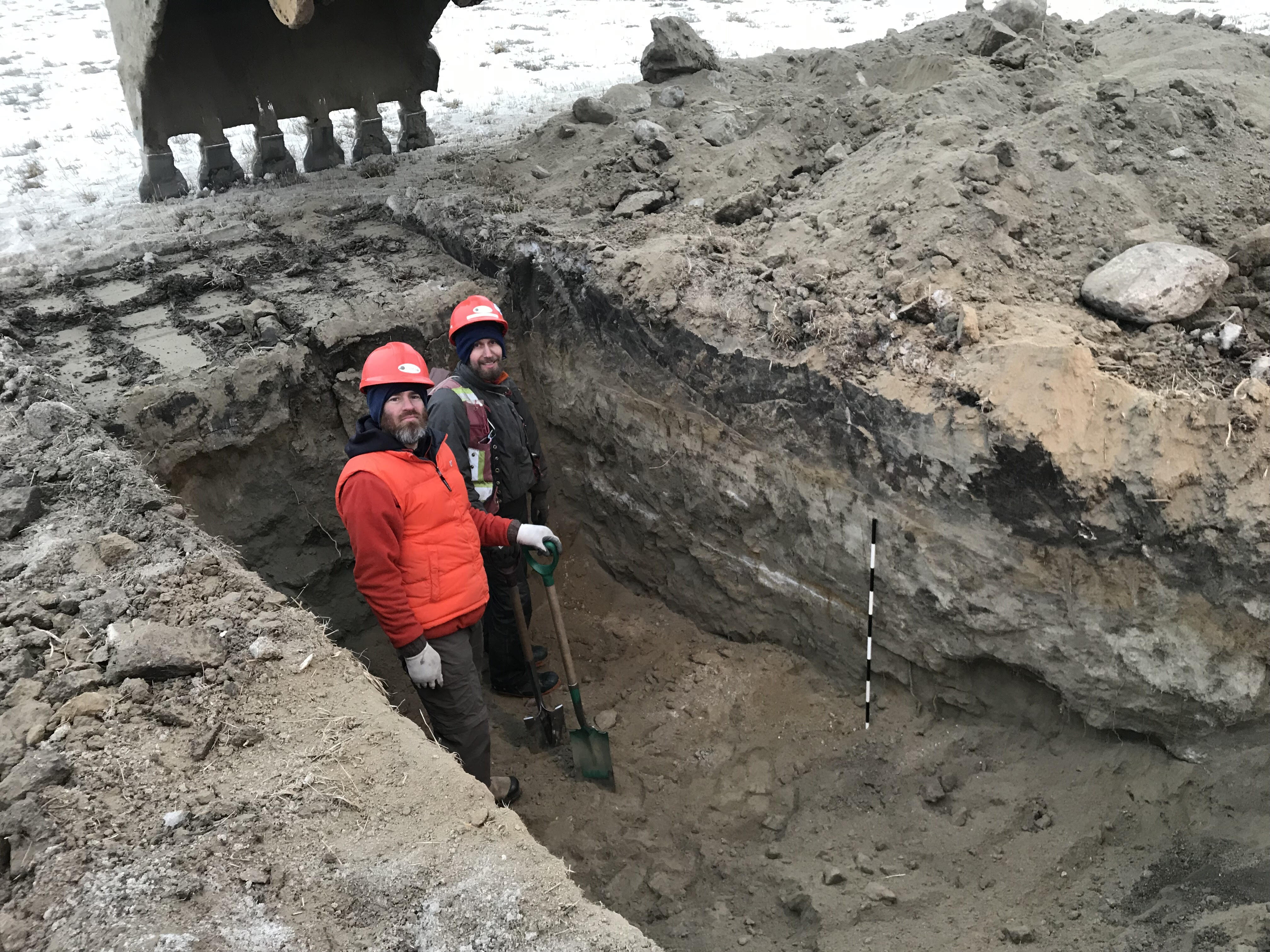 - Backhoe! If that big machine can get in there, and everyone is okay with this (regulator, proponent, landowner, etc.), dig up a big hole, but make sure you go through that dirt slowly to fully understand the stratigraphy and look for artifacts. (Side note: backhoe testing is great in non-winter conditions, for assessing for deeply buried deposits.)
