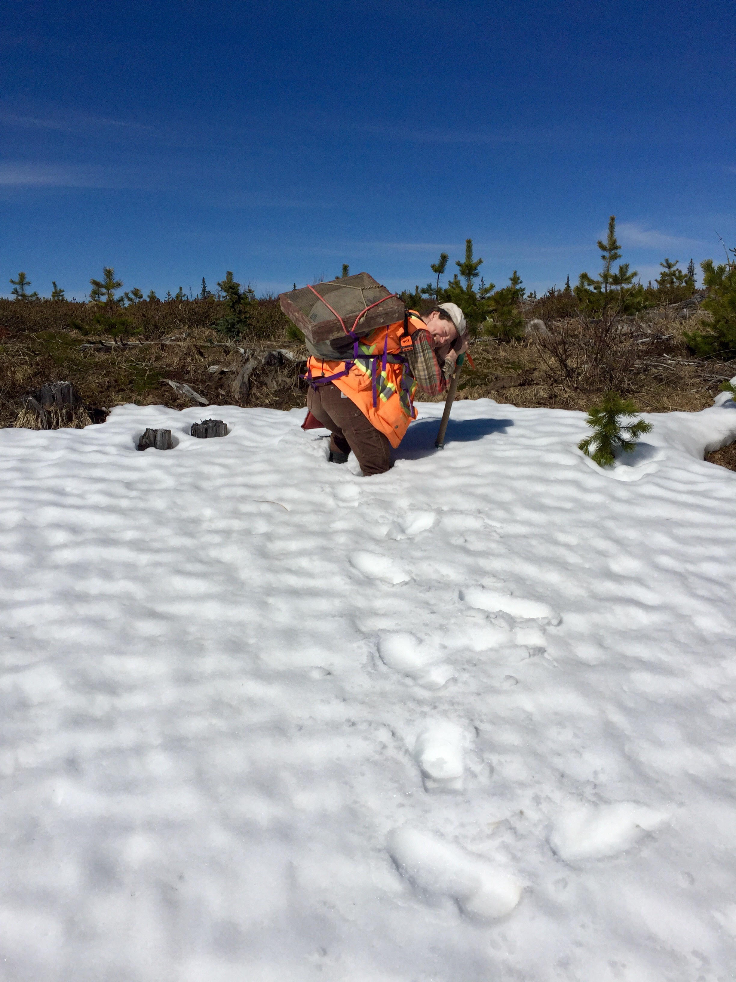 Fieldwork during the winter is pretty tough. The crew is cold, and the work is much more physically demanding than we are used to. Teamwork is key! As is proper planning. Seriously. Don’t forget your snowshoes!