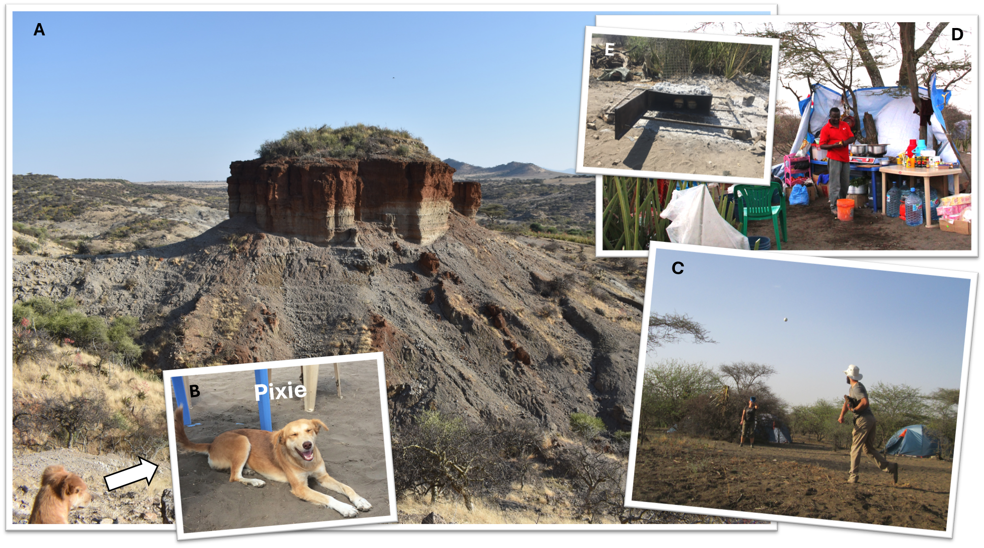 One surprising part of fieldwork at Oldupai Gorge was the dogs. Living at nearby Maasai homesteads, they kept watch against wildlife and helped with herding, but off duty they often wandered over to our camp. At first it was for treats, but a few quickly became trusted companions, lifting our spirits after long days in the field (Photos 3A–B).