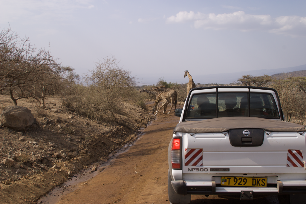 One particularly memorable moment happened on a long, dusty drive from the Ngorongoro volcanic highlands down toward Oldupai Gorge. Our convoy of vehicles came to a halt thanks to what we jokingly called a “Giraffic Jam” — a group of giraffes casually blocking the road while enjoying some roadside snacks, completely indifferent to our situation. Seeing giraffes cause a traffic jam was a surreal experience and definitely not in the driver’s manual (Photo 5).